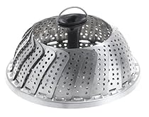 - 11-inch stainless steel folding vegetable steaming tray with extendible handle