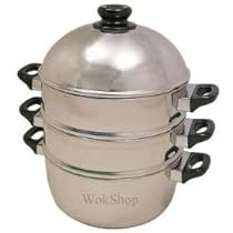 These heavy gauge stainless steamers are made to last. The 4-piece set is complete with two stackable perforated tiers now with a see-thru heatproof glass lid and the pan. Durable black heat-resistant handles.